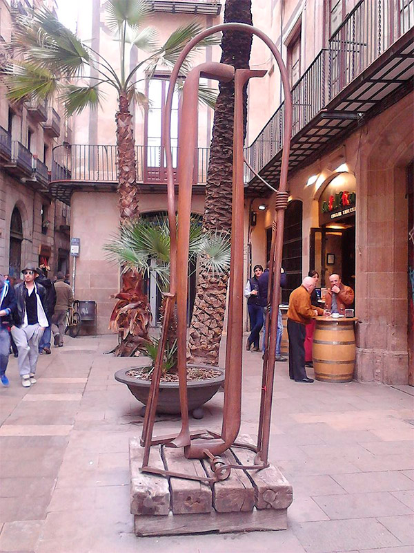 Sala Montcada, located on Calle Montcada, 20, on the ground floor of the palace Dalmases organized an exhibition of American artist Rodger Mack, who was interested in knowing the changes he saw in a neighborhood that had known years ago. So, he came into contact with the Platform of entities of the Bank, which defends the interests of the neighborhood. Mack decided to give one of the sculptures exposed and even changed the name to rename it as in Montcada Jazz. The sculpture was inaugurated by the Councillor for Ciutat Vella, Xavier Casas, during the Festival de la Ribera, in September 1994. For a few months of 2001, while the Paseo del Born and Plaza de Moncada is reformed, it was withdrawn, but it was reinstalled in early 2002.