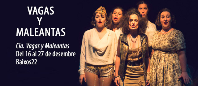 Vagas y Maleantas es una obra de teatro con actuaciones musicales que reflexiona sobre el papel de las mujeres a la historia y a la historia de nuestro país usando el símil de la mujer como corista -siempre un paso atrás del protagonismo, llenando vacíos y dando precisión o simplemente como objeto de decoración- para acabar tirando una propuesta: qué pasa si la solista somos todas? qué pasa si cantamos todas a la vez, cada una con su propio registro, con su propia voz?