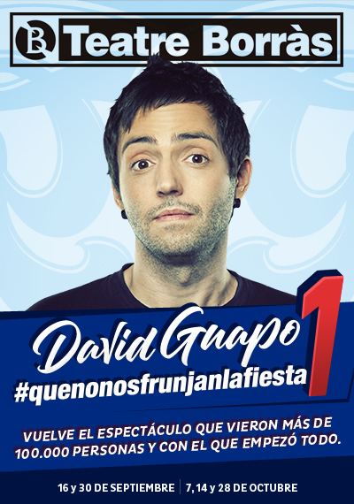 David Guapo es uno de los mejores cómicos del panorama nacional. Está consolidado como cómico multidisciplinar, como hemos podido comprobar en sus apariciones en tv cantando en  "Tu cara me suena", monólogos en "El club de la comedia" y, recientemente, en su faceta como actor en "Señor Dame paciencia" de Álvaro Díaz y "Sin Rodeos" de Santiago Segura, dos de las comedias Españolas más taquilleras en los últimos años. Sus espectáculos son un despliegue de talento: acting, improvisación y música combinados siempre con el mejor humor, ironía y desparpajo, para todos los públicos.